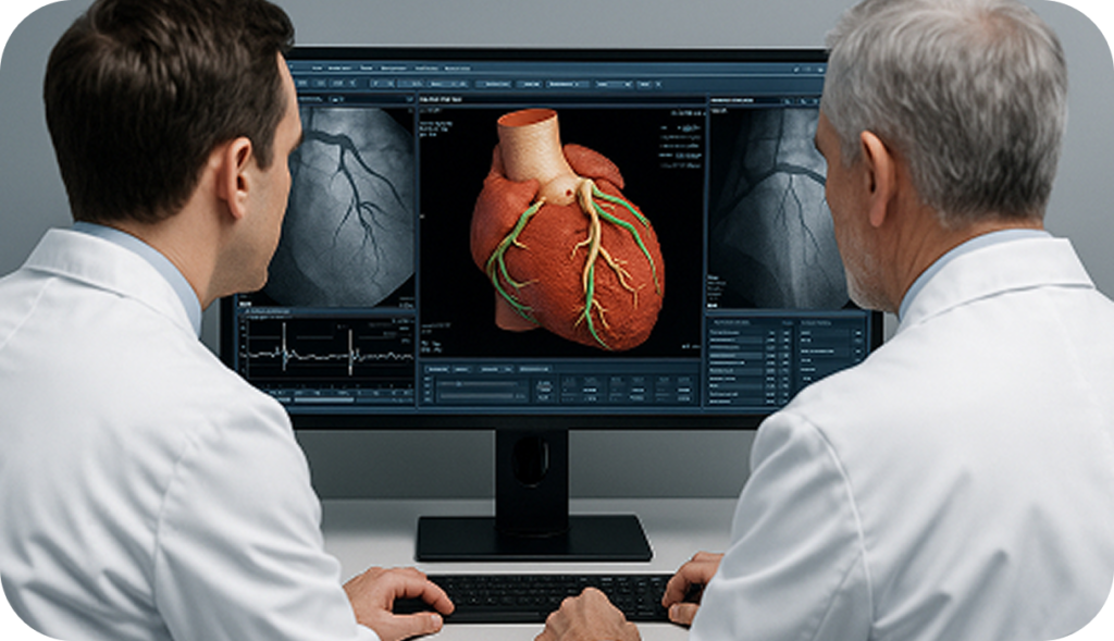 This isn’t just another tech company selling scans. We’re a doctor-owned, ACR-accredited medical practice. Every scan is reviewed by two subspecialty-trained radiologists, including cardiovascular imaging experts.